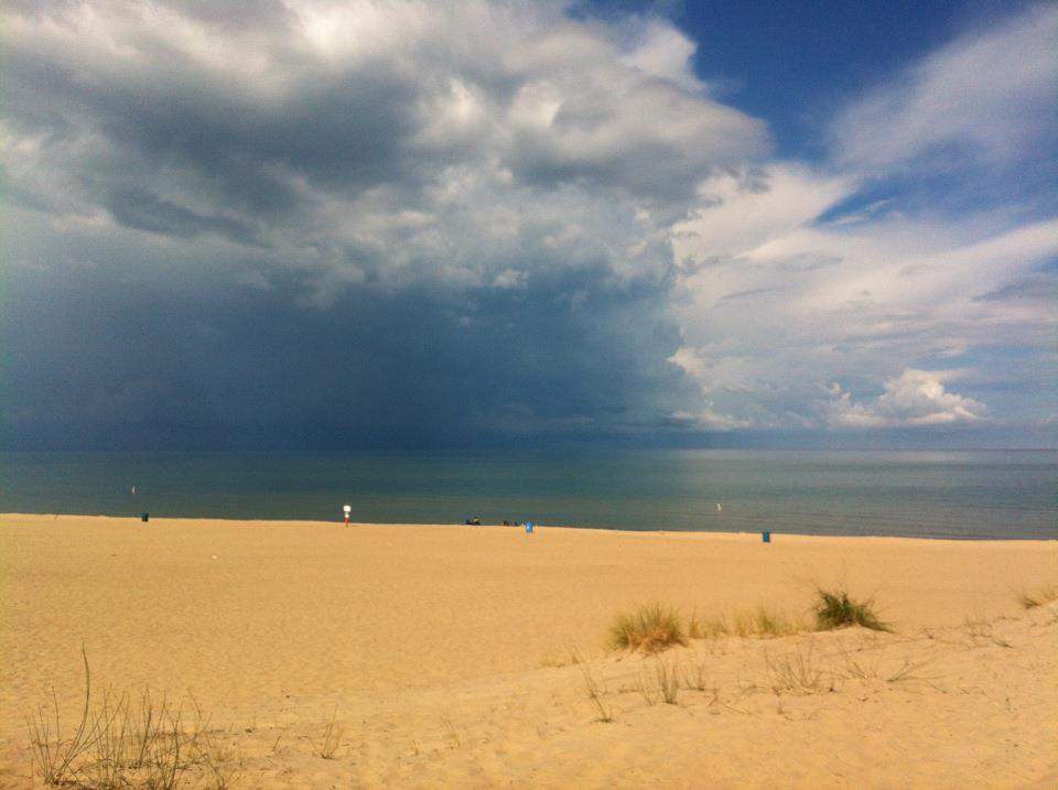 So we’ve got the warm water part of the lake-effect equation, and mid-week, we had much cooler weather roll in. Meteorologists have determined that there needs to be around 25-degree temperature difference between the water surface and the air at 5,000 feet for the lake-effect to occur. With the water temp at about 75 degrees, on Wednesday, the air temp at that height was about 51 degrees… viola! Lake-effect rain. This is why we had those weird rain showers pop up out of nowhere late Wednesday afternoon.
