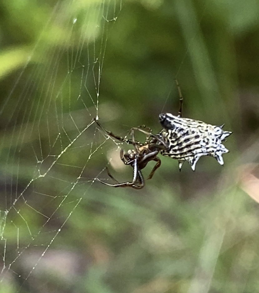 So, next time you unexpectedly take a spiderweb to the face, take a quick peek at any remaining web on either side of the trail to see if you can spot this cool-looking creature! And no squashing!