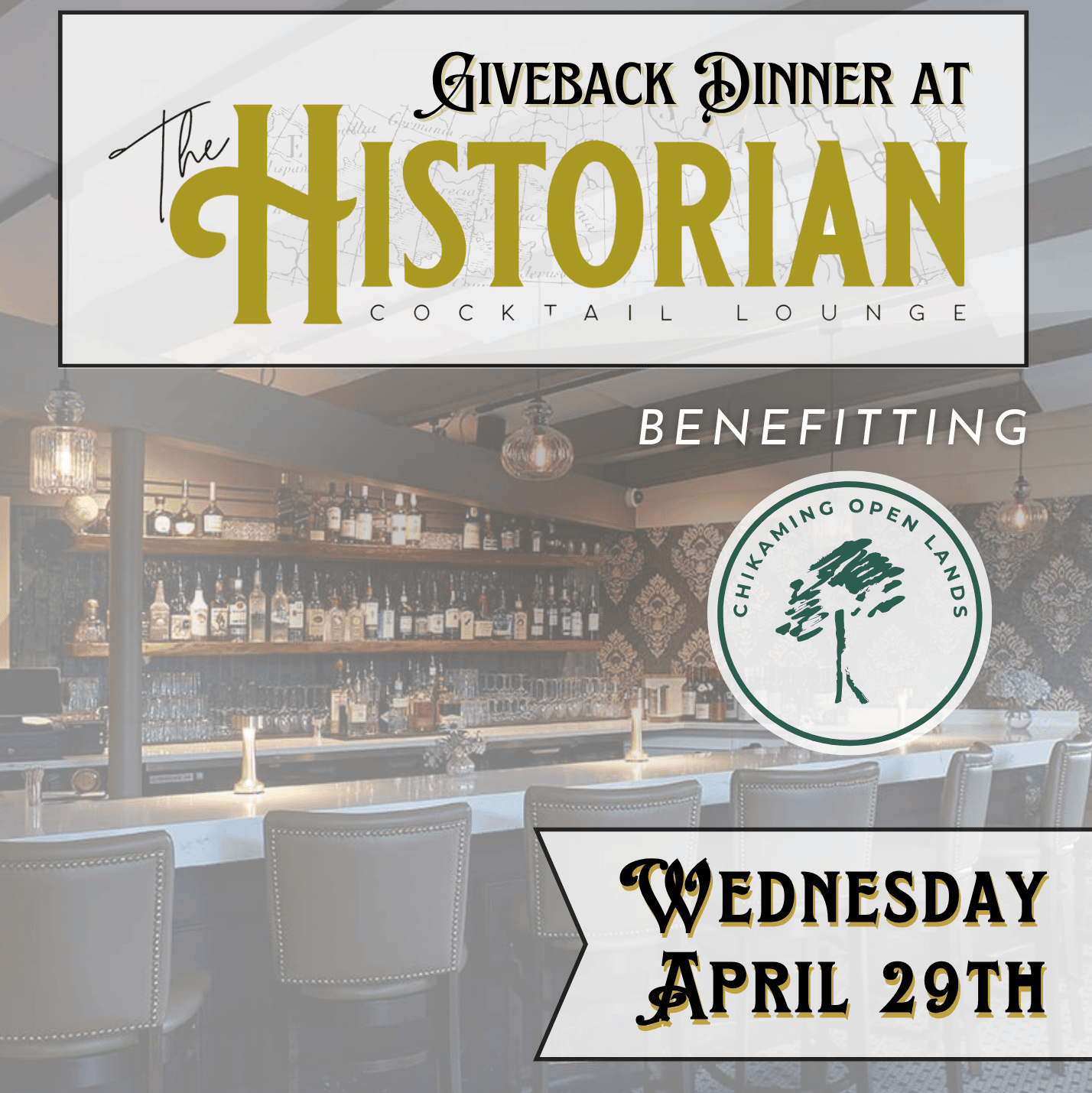 Join us on Wednesday, April 29th for a special Giveback Dinner at The Historian benefiting Chikaming Open Lands!